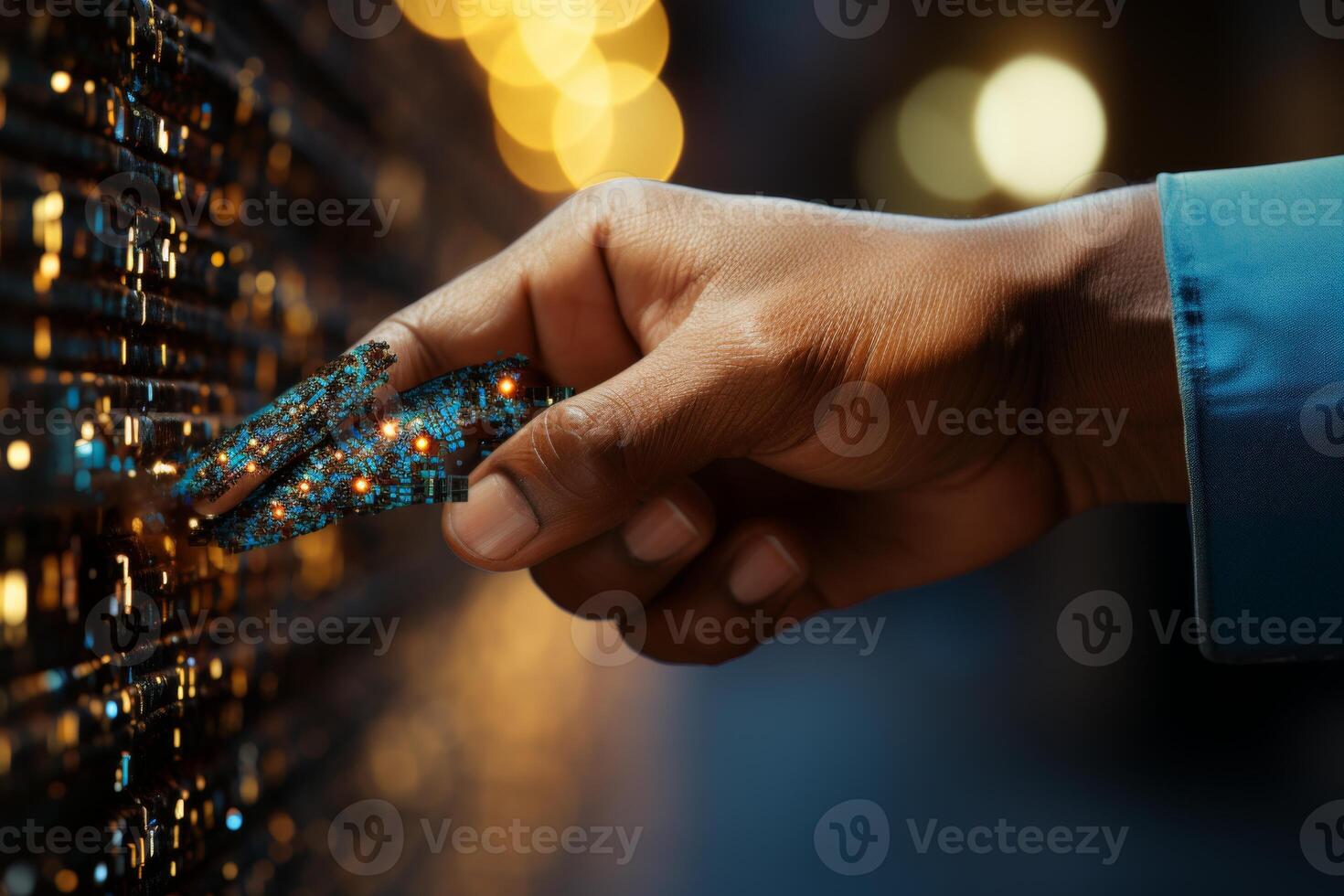 Businessman using ai machine learning on virtual screen with big data and computer code Pro Photo