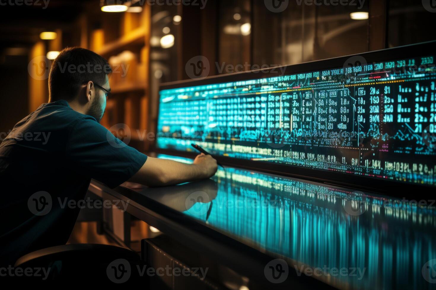 Ai machine learning, big data, technology concept with businessman touching virtual screen Pro Photo