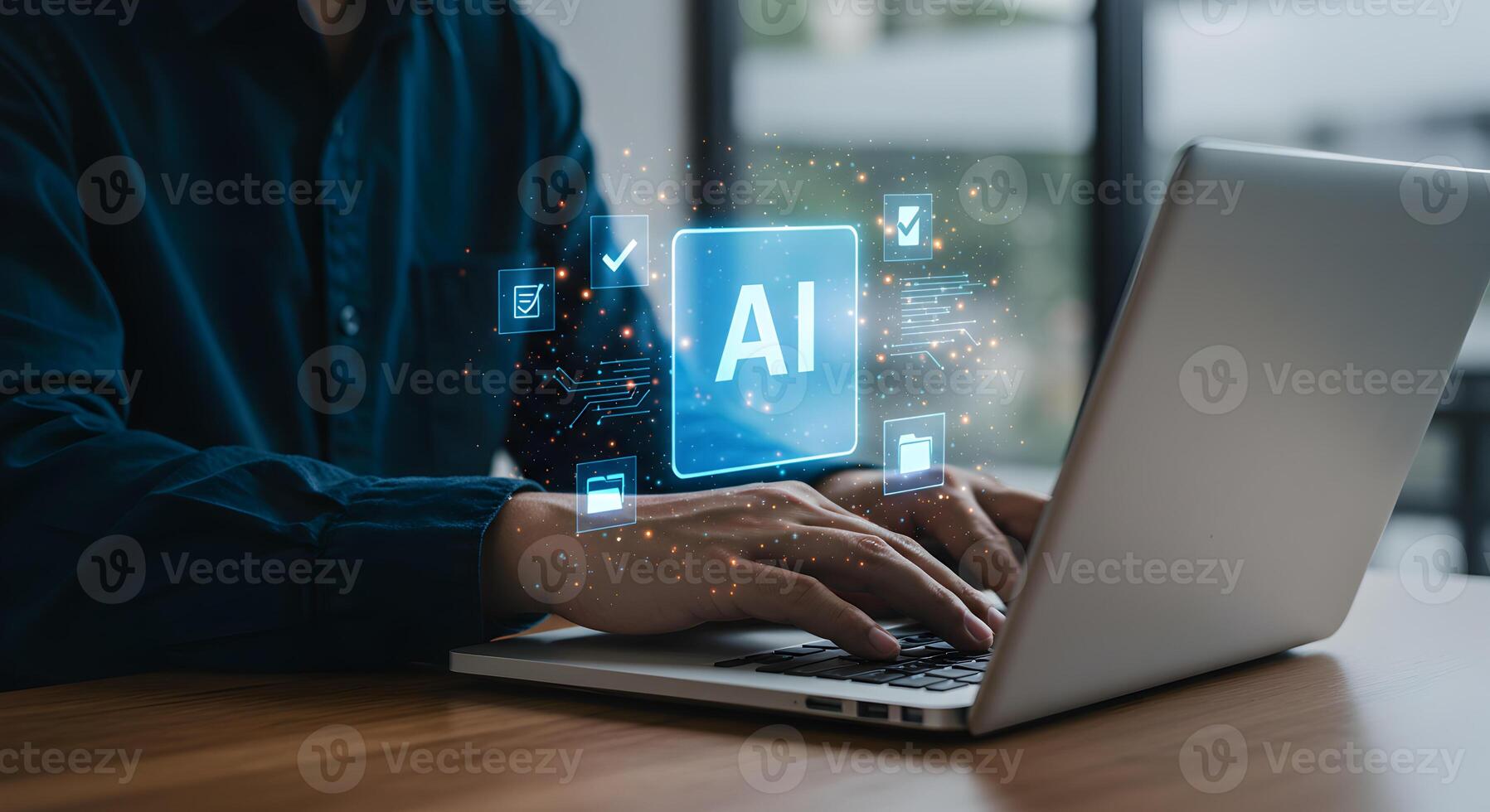 Ai artificial intelligence technology concept person using laptop for machine learning tasks and automation Pro Photo
