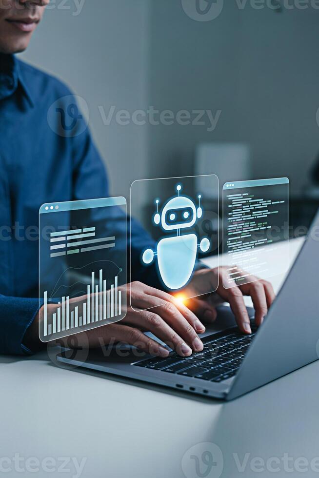 Ai chatbot development using laptop for automation and artificial intelligence technology concept Pro Photo