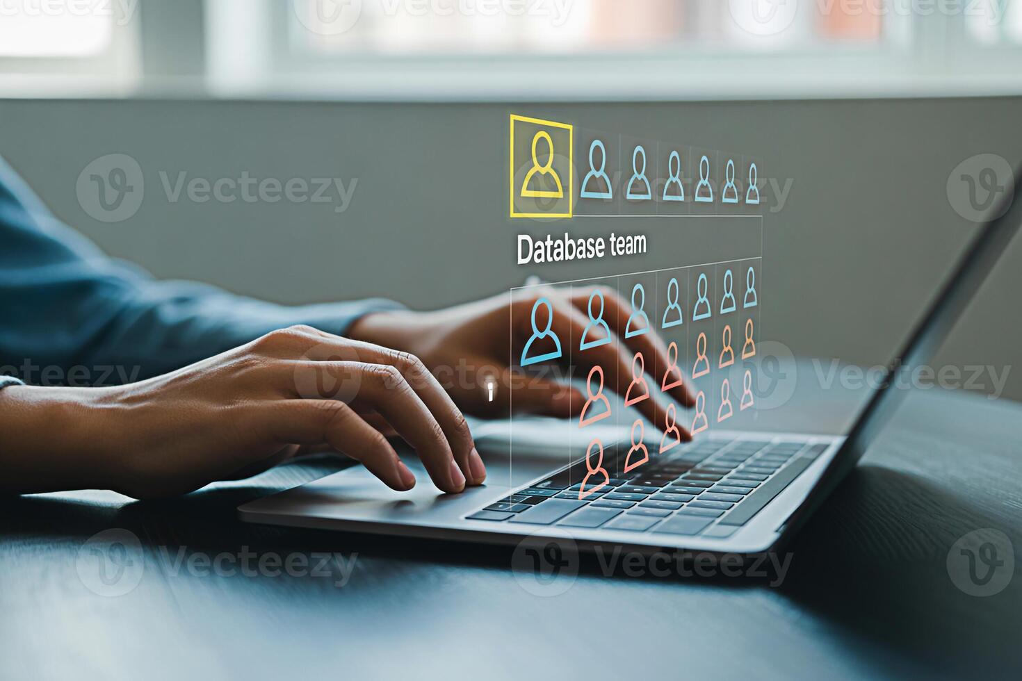 Database team management software for human resources and employee data using laptop computer online access Pro Photo