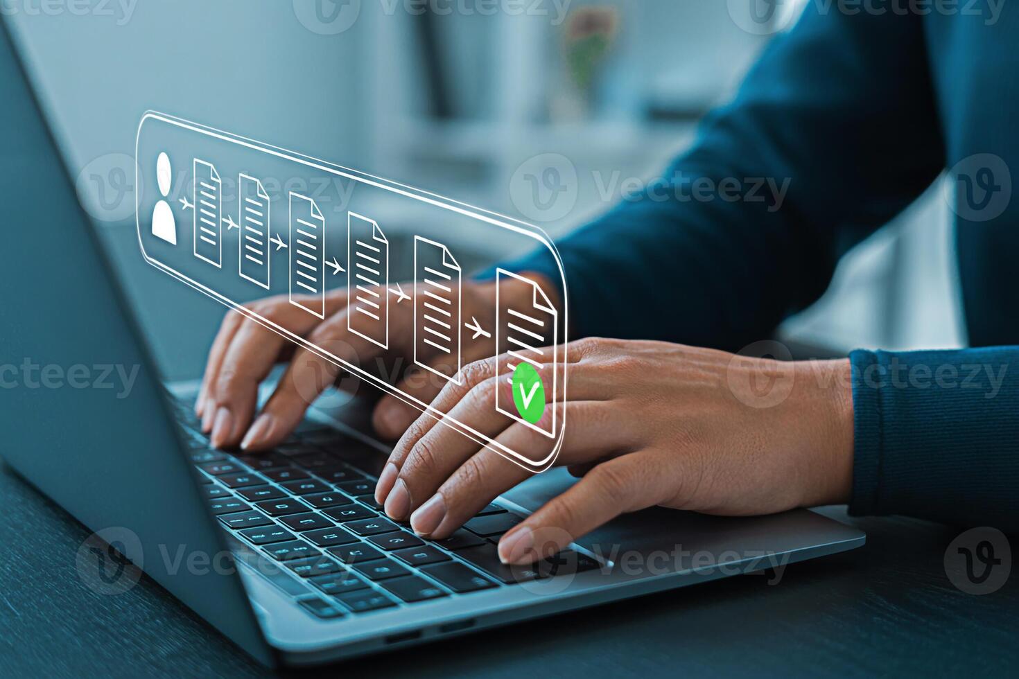 Online form submission process on laptop for digital document management and workflow automation system Pro Photo