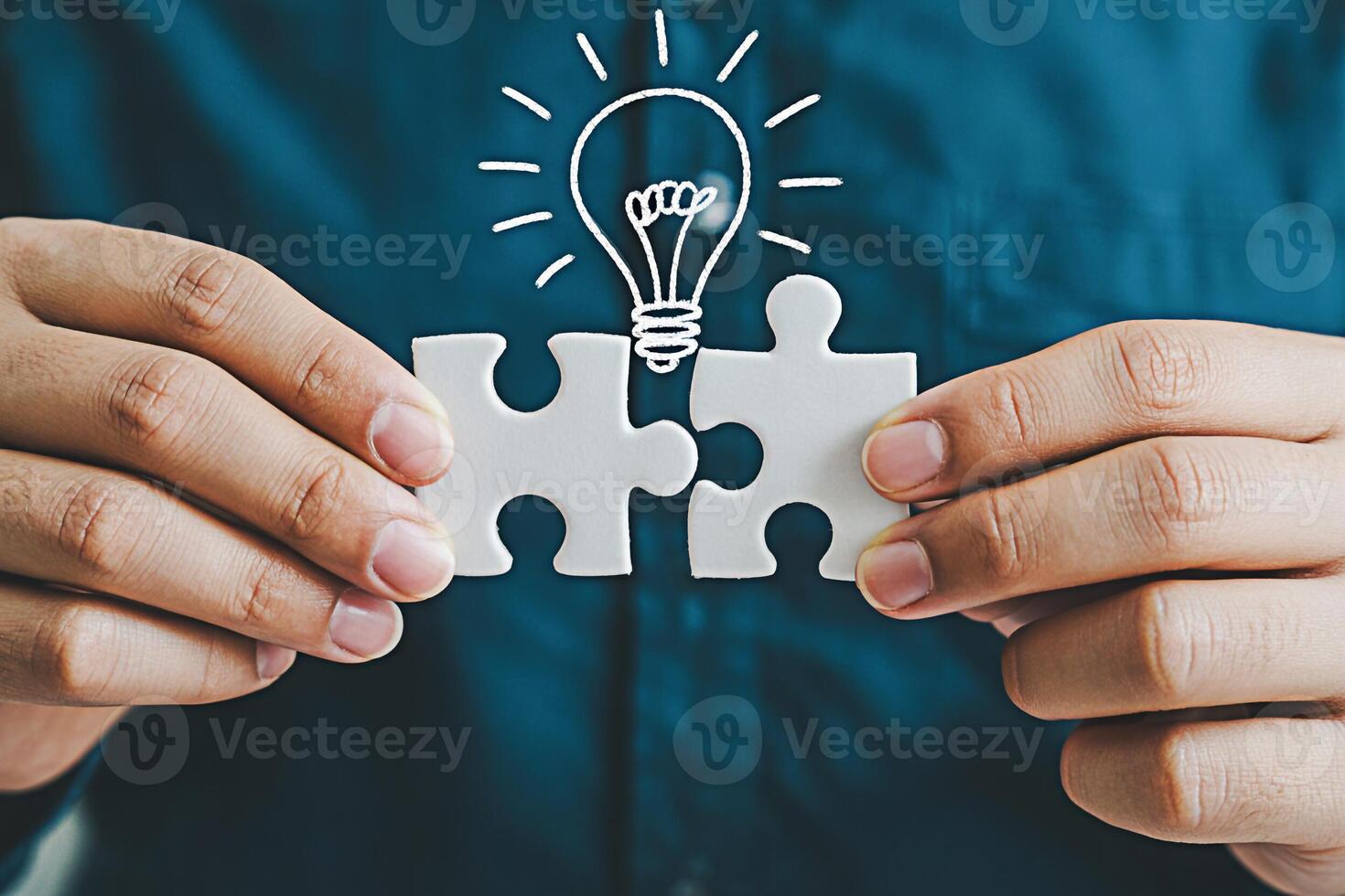 Connecting puzzle pieces idea concept innovation solution problem solving teamwork collaboration concept Pro Photo