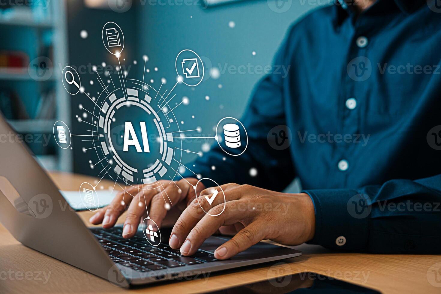 Understanding artificial intelligence ai technology man using laptop for ai development and machine learning Pro Photo