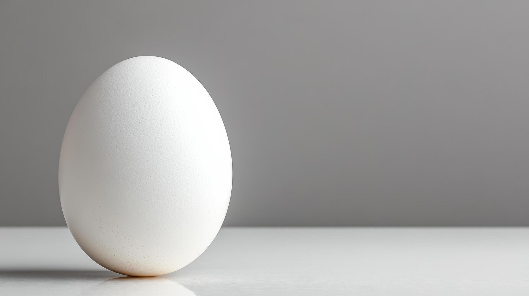 Single egg standing upright glossy white surface, showcasing its smooth texture and simplicity Free Photo