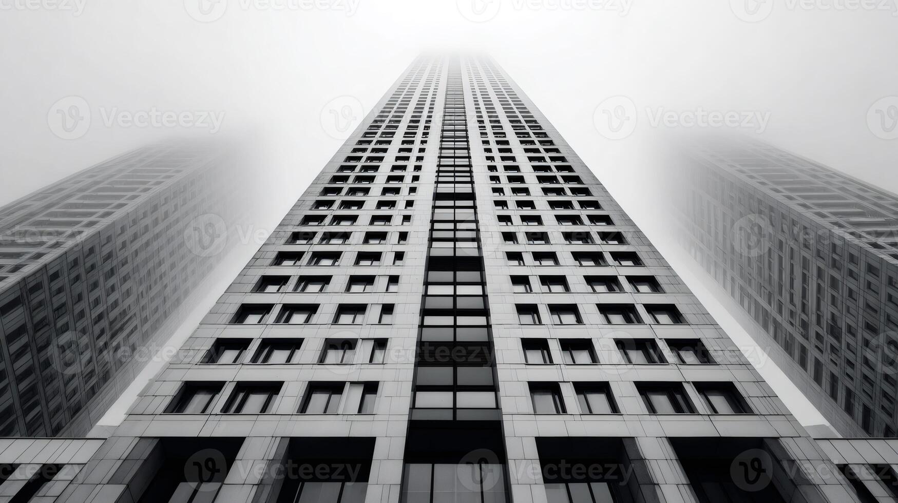 Skyscrapers disappearing in the fog creating a low angle view of modern architecture Pro Photo