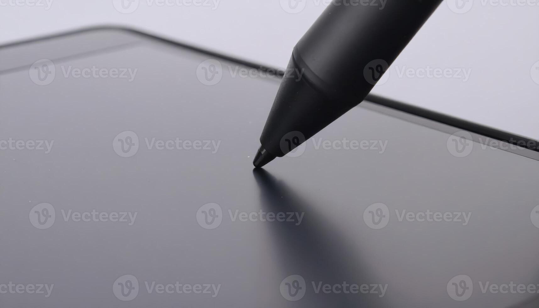Macro close up of a stylus tip hovering over a tablet screen with copy space on the side, suitable for technology themes, digital art projects, design visuals, modern device concepts, and creative Pro Photo