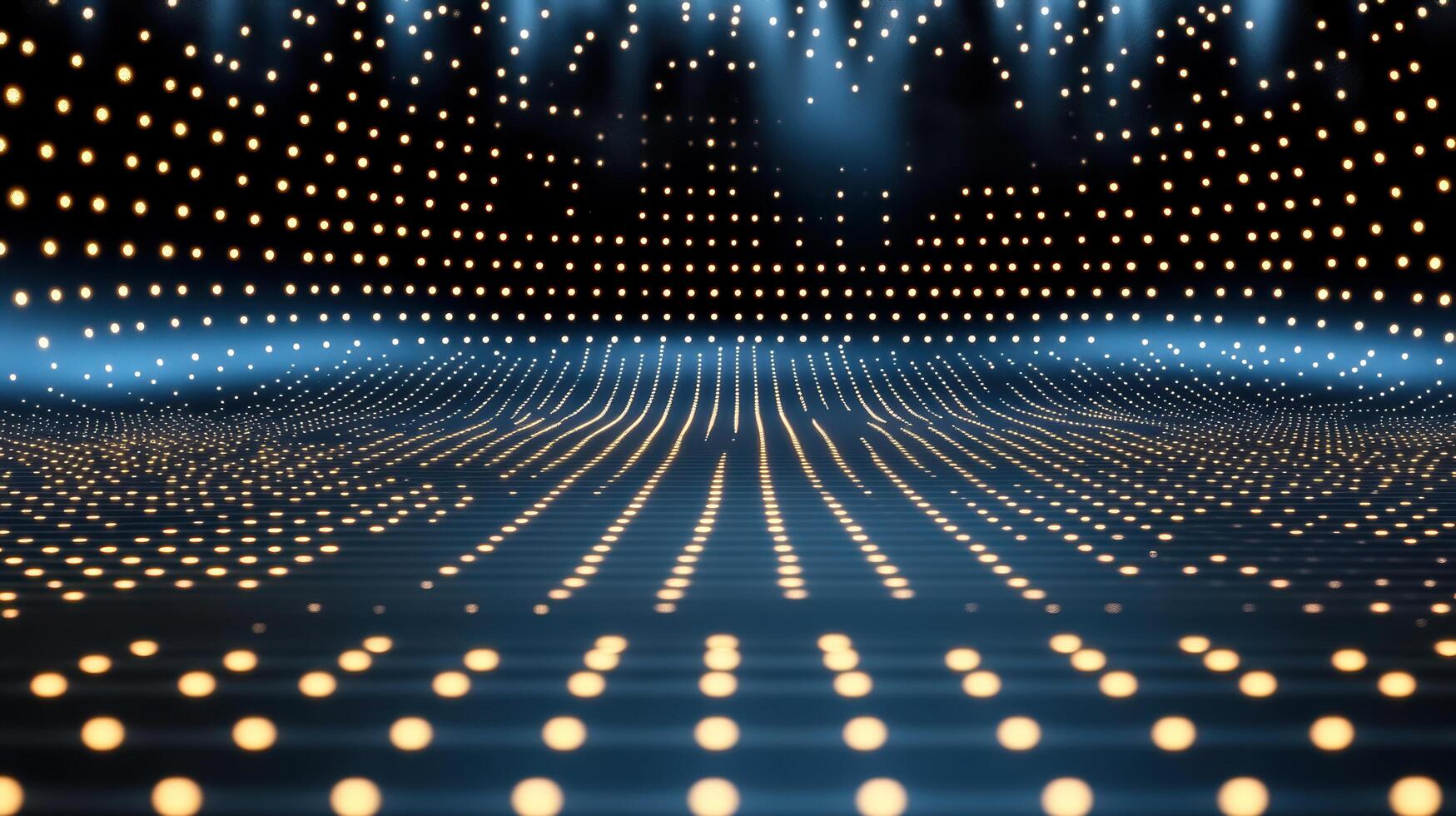 Bright glowing dots create mesmerizing pattern dark background, evoking sense of depth photo