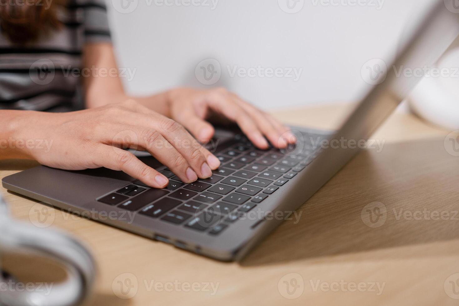 Hands typing on a laptop keyboard, showcasing technology and productivity in a modern workspace setting. Pro Photo