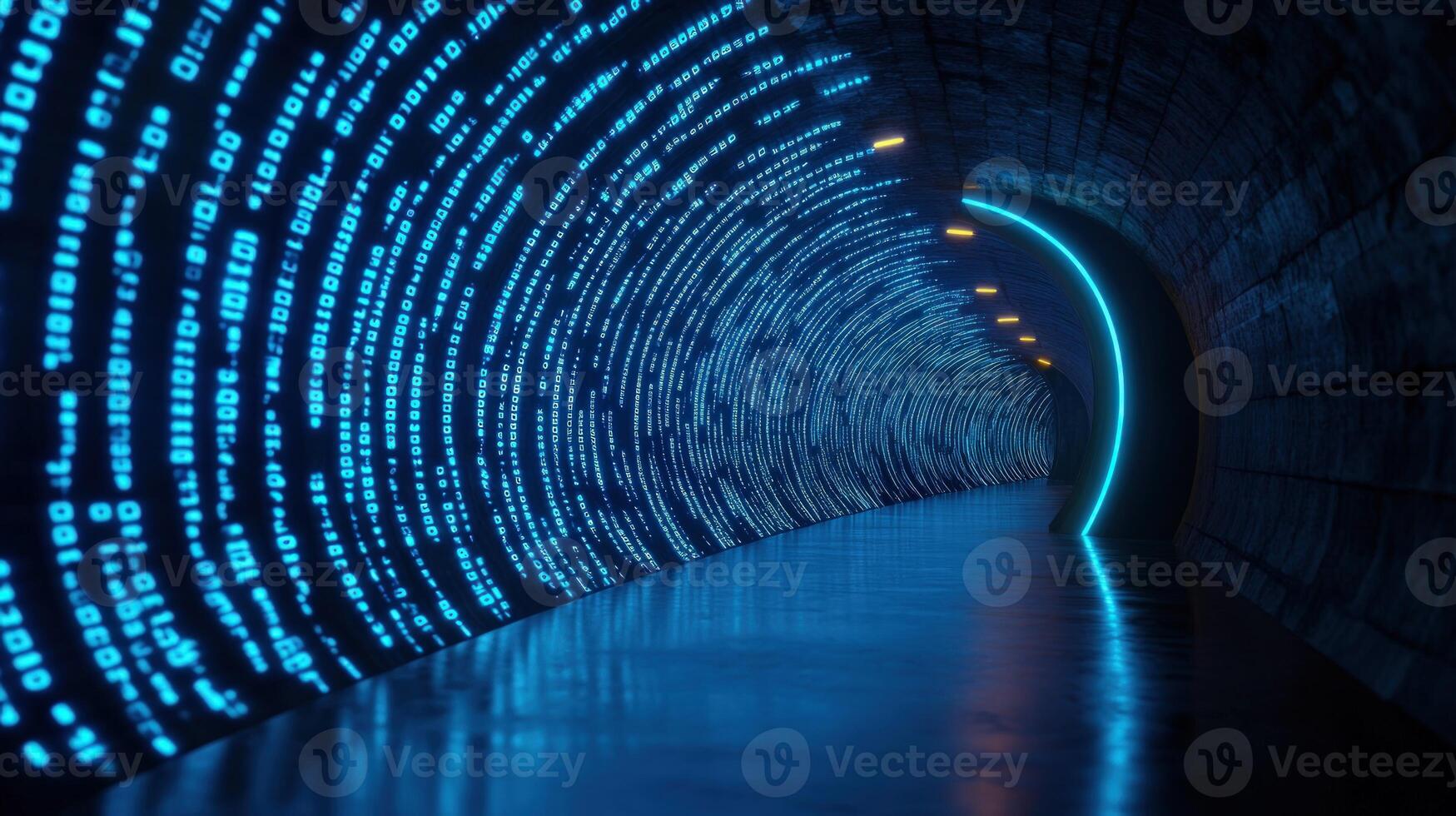 Digital Tunnel Pathway with Binary Code Pro Photo