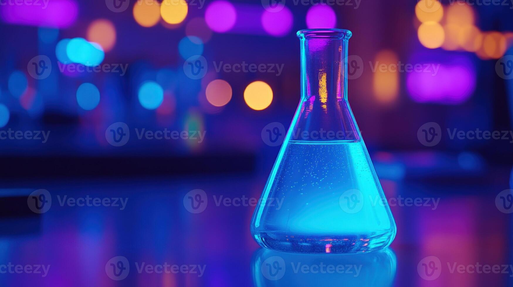 Neon Lit Erlenmeyer Flask in a Lab Setting Pro Photo