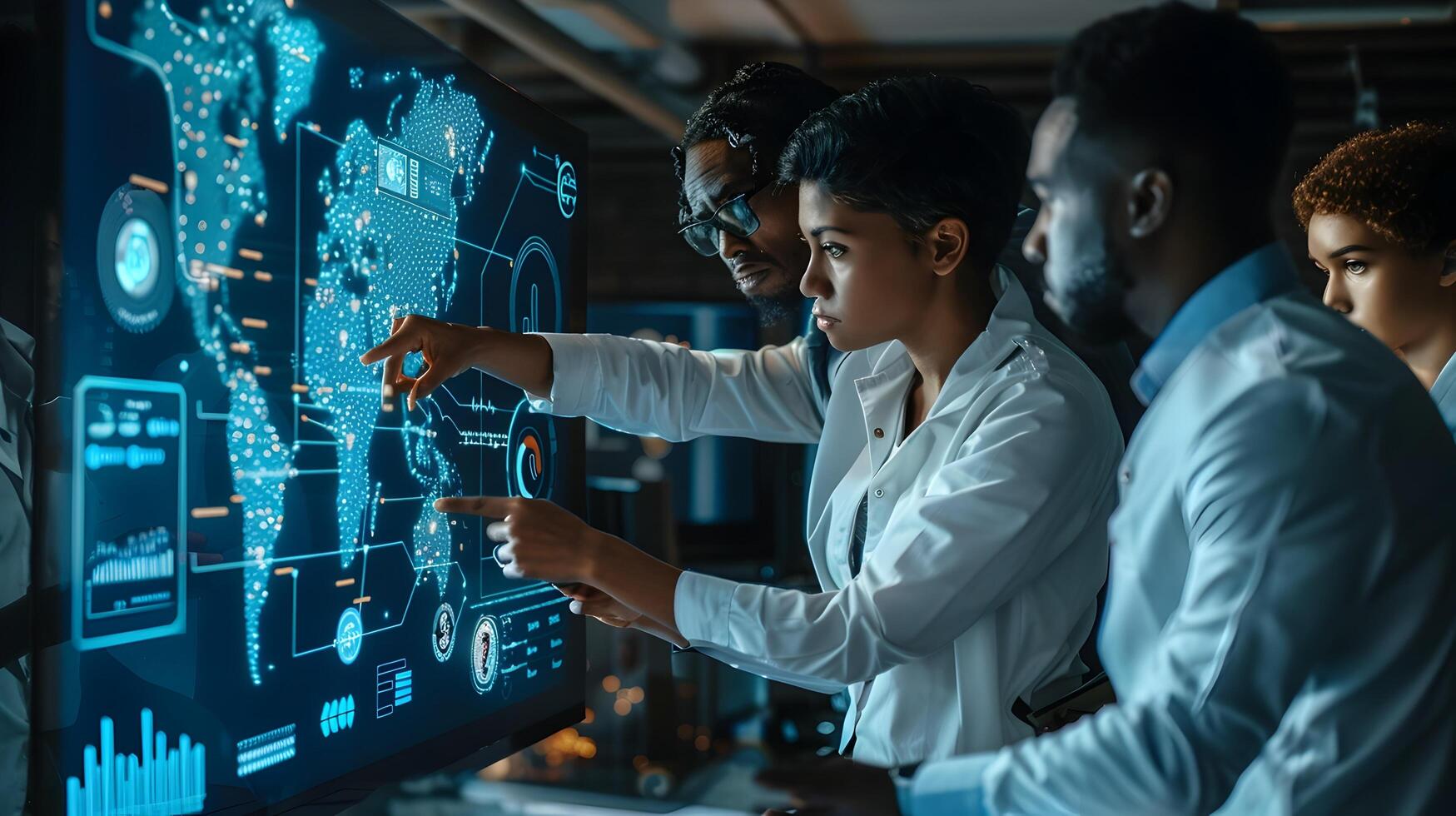 Diverse Corporate Team Strategizing Over Digital Data Analytics Dashboard photo