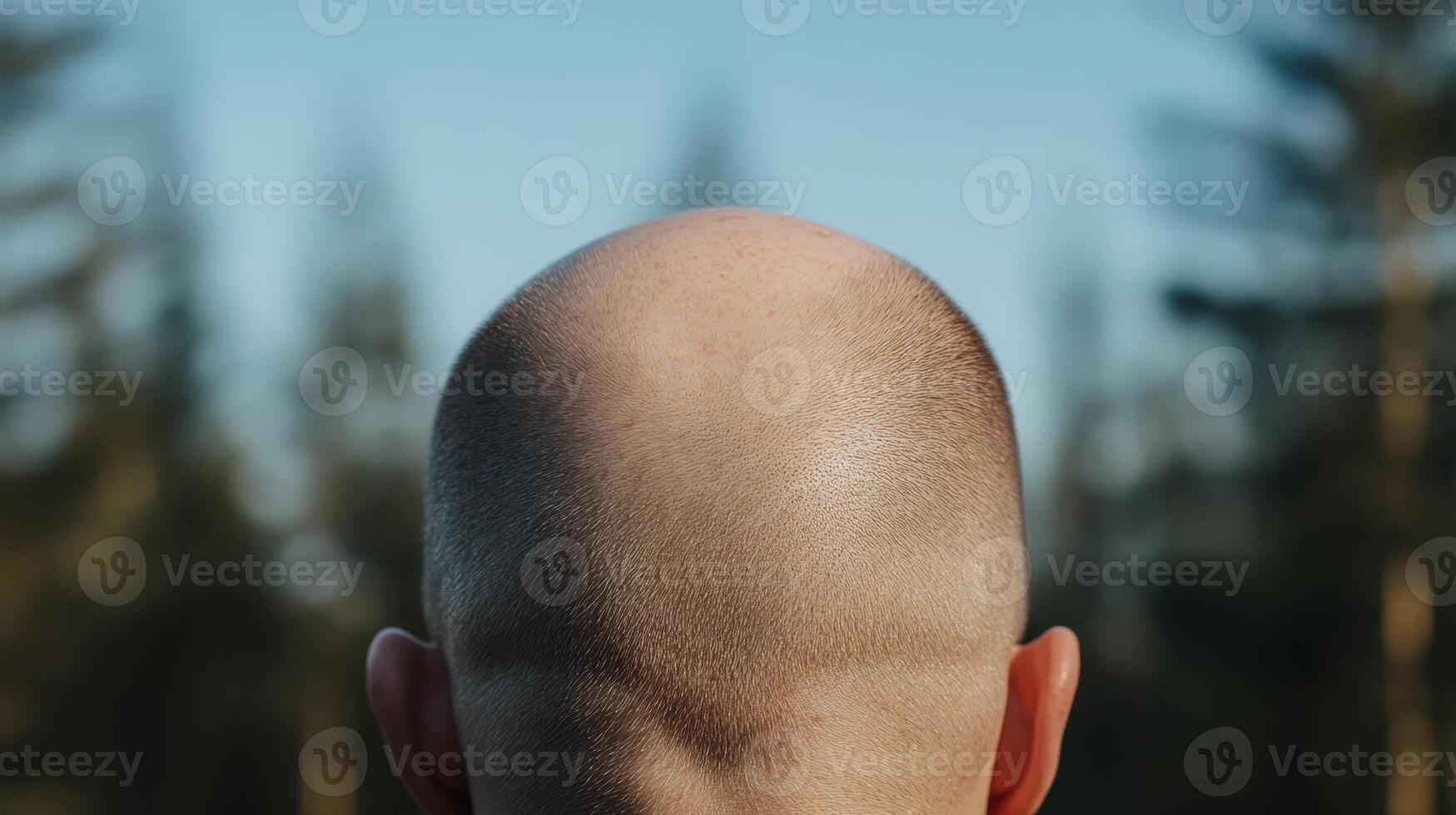 Capturing the serenity of nature through the perspective of a person with a shaved head in the wilderness during daylight hours Pro Photo