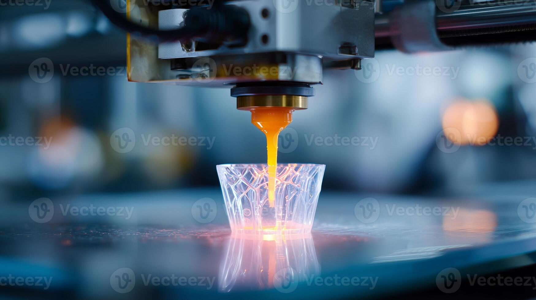 3D printing process capturing the creation of a transparent object in a modern workshop Pro Photo