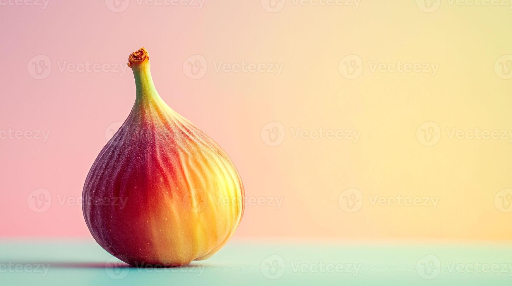 Fig with vibrant skin sits on a pastel surface against a soft gradient background in a calm setting Pro Photo