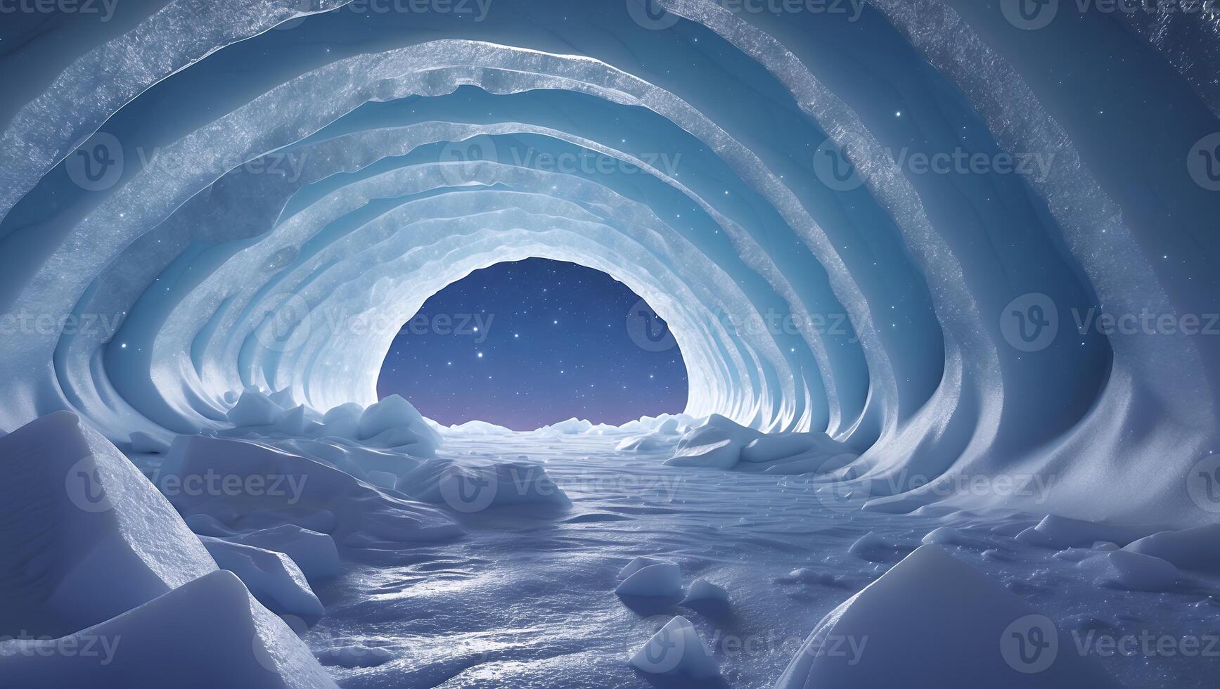 Exploring Ice Cave with Starry Sky View Through Tunnel Opening Pro Photo
