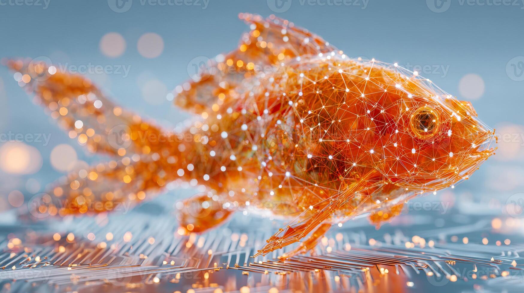 Digital transformation of a goldfish into a futuristic data network visualization Pro Photo