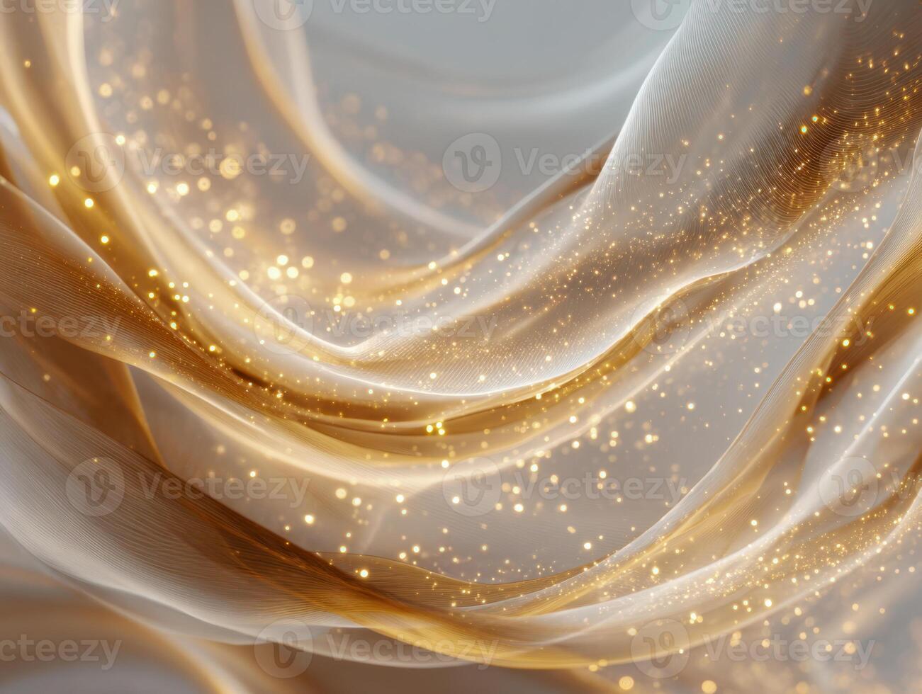 Abstract flowing golden fabric with shimmering glowing particles and soft waves creating an elegant and luxurious visual effect in a smooth background Pro Photo