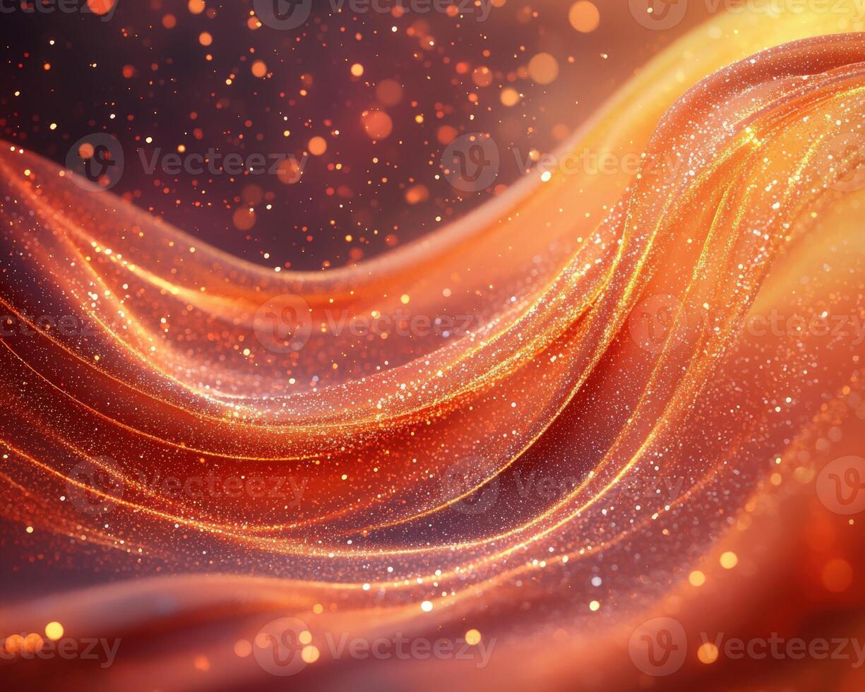 Abstract shimmering orange and gold flowing waves with sparkling particles and glowing light effects. Pro Photo