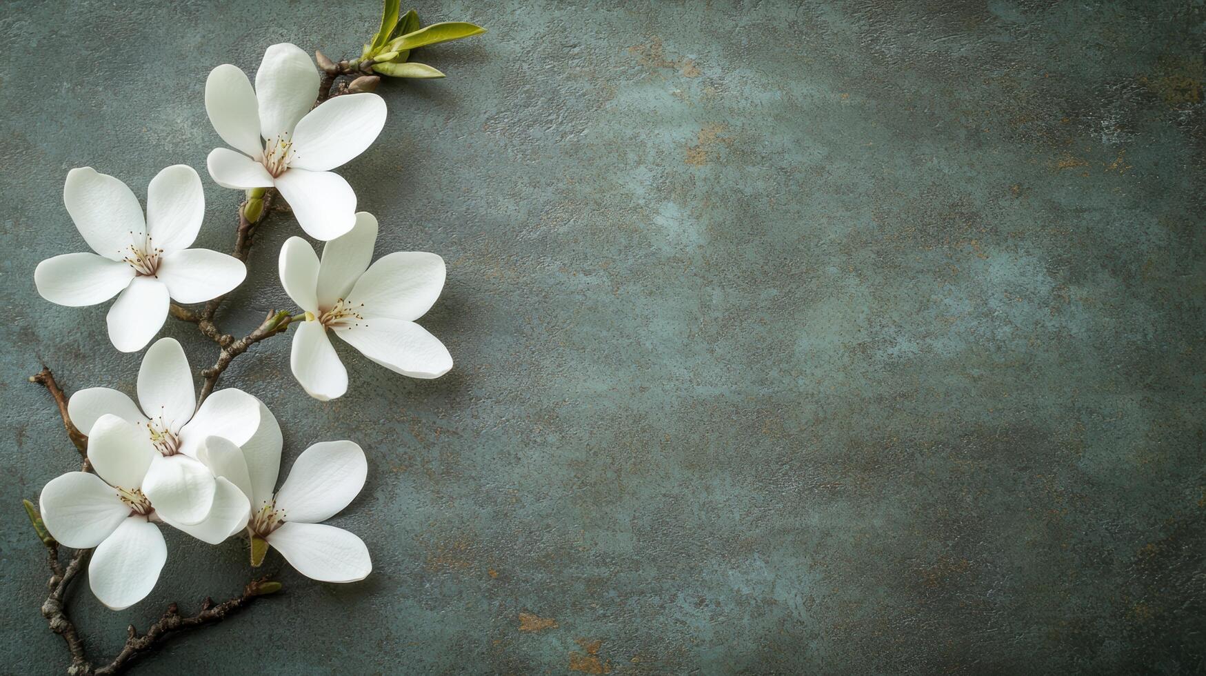 White flowers arranged on textured background in spring setting with balanced composition Free Photo