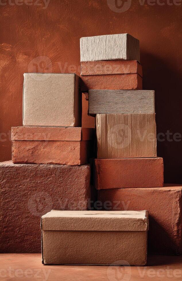 Stacked cardboard boxes and bricks creating an abstract arrangement Pro Photo