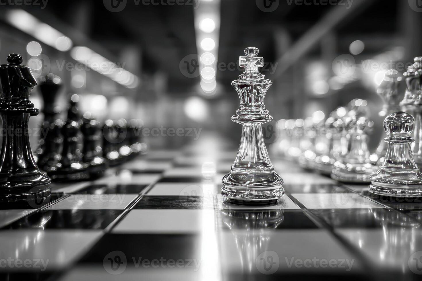 Chess game in progress with a focus on the clear king piece in a modern setting Pro Photo