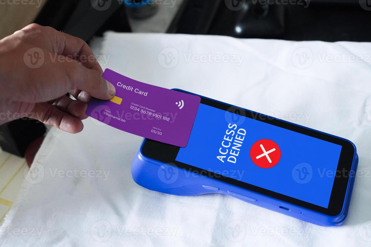 Image of a failed credit card transaction using the NFC feature. Fintech Concept Pro Photo