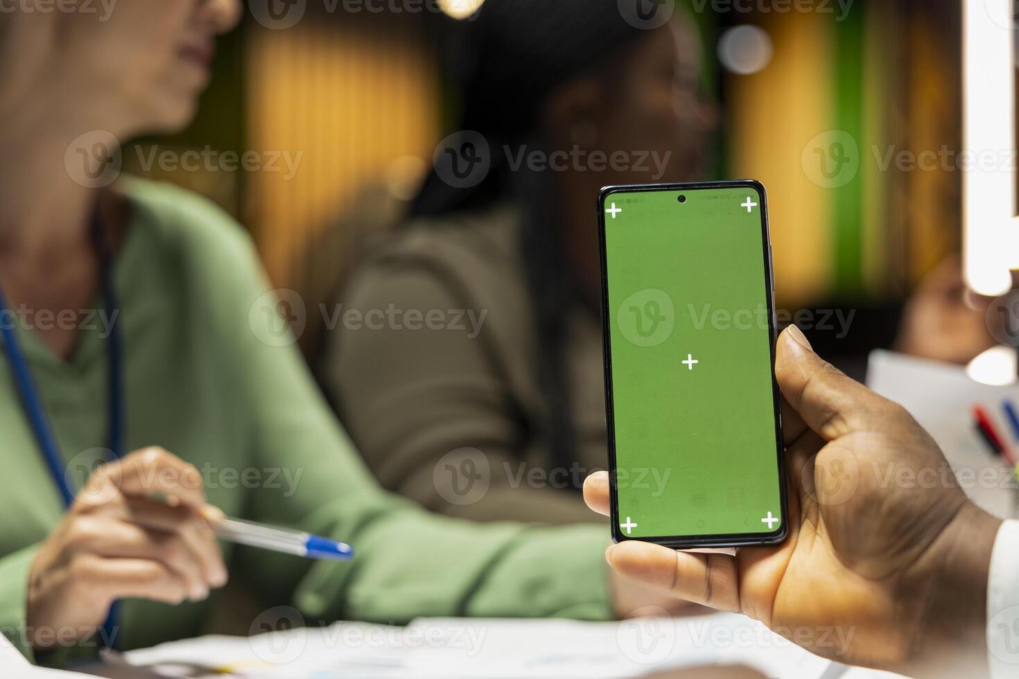 Coworkers team work late at night reviewing reports with copy space, analyzing trends and collaborating on strategy updates supported by visual data. Company projections with analytics. Pro Photo