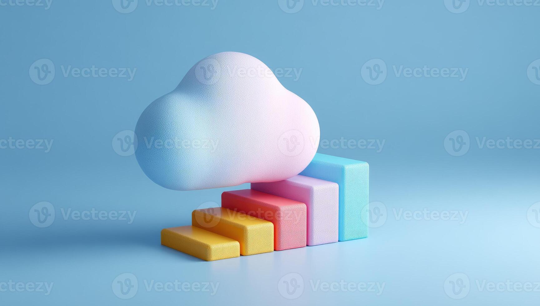 Cloud computing concept with colorful bar chart on blue background 3d render Pro Photo