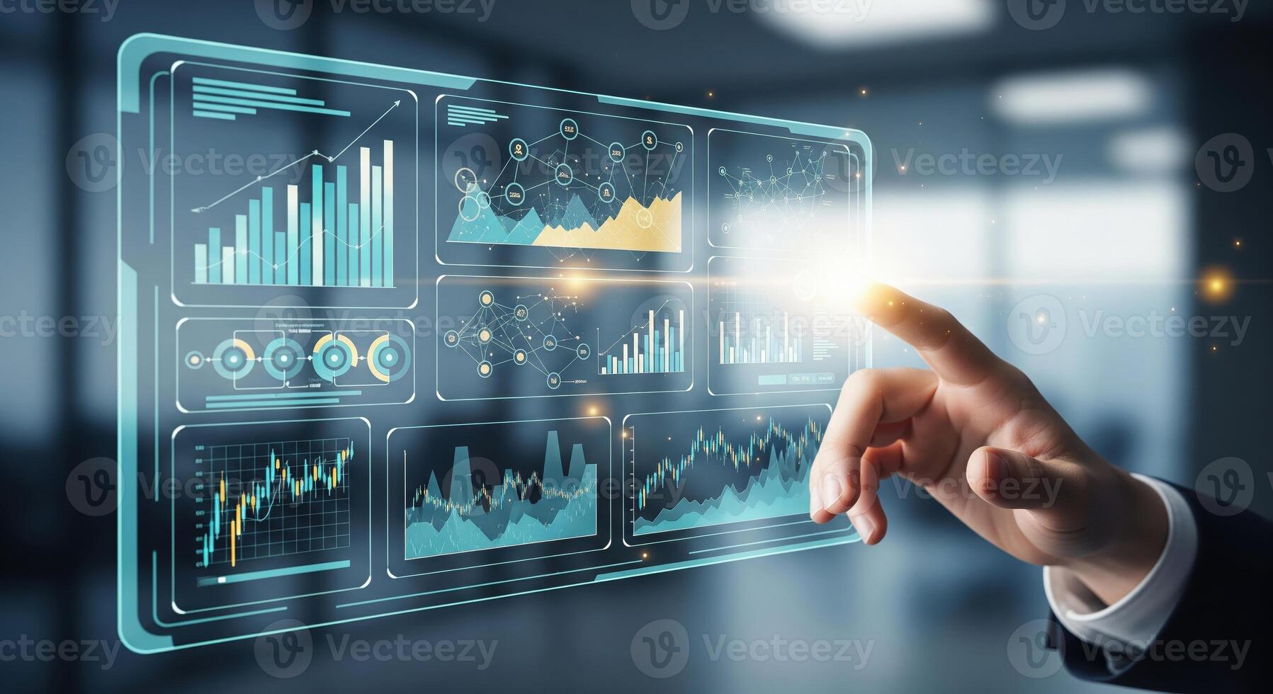 Futuristic Touchscreen Interface with Data Visualization. Pro Photo