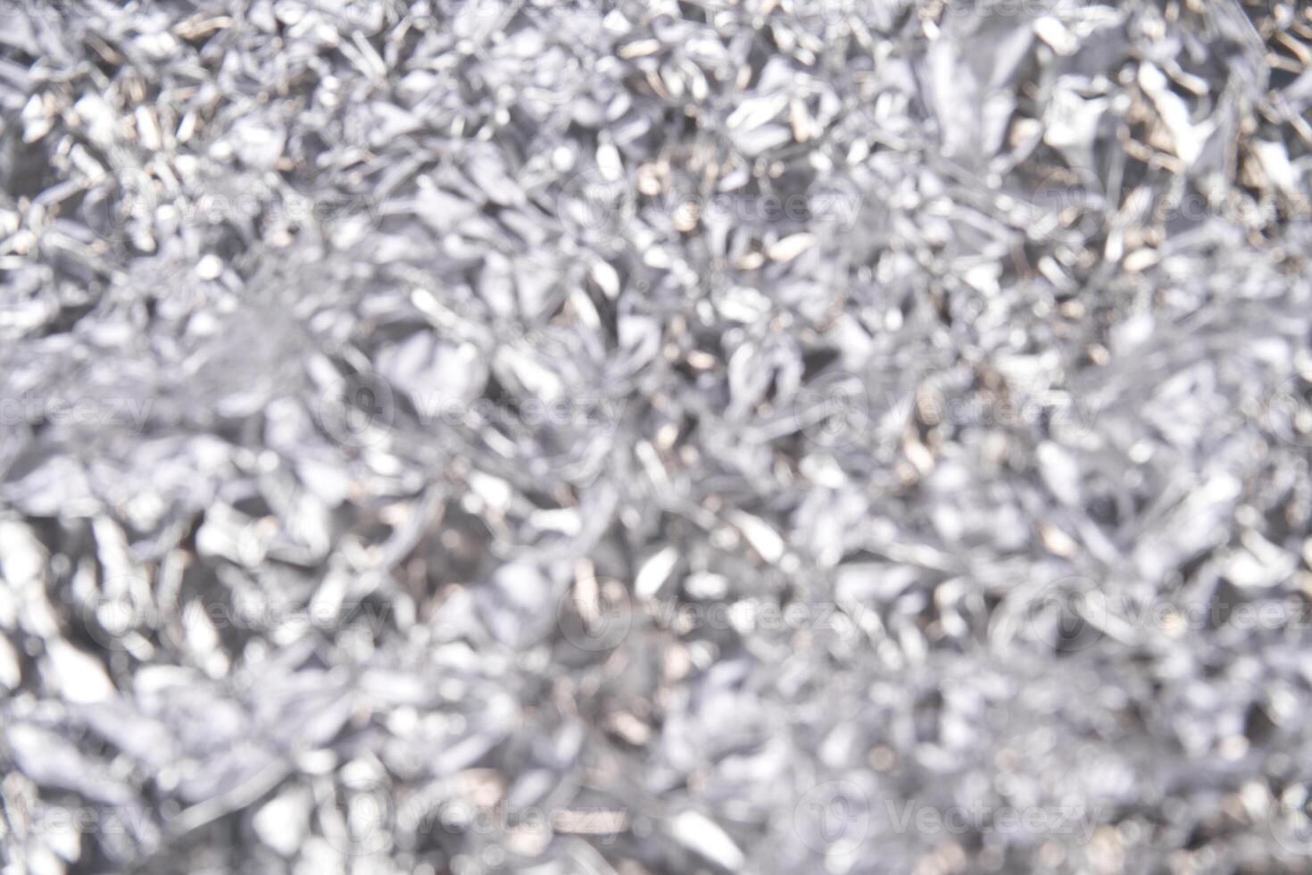 Crumpled silver foil texture with shiny metallic surface and irregular patterns in soft focus. Pro Photo