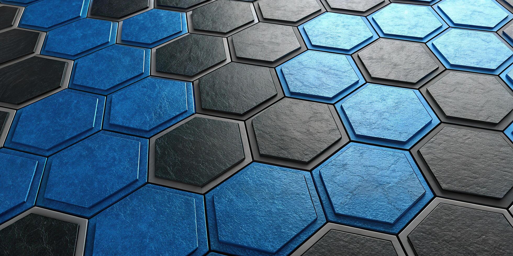 Abstract hexagonal pattern with blue and gray textured surfaces Free Photo