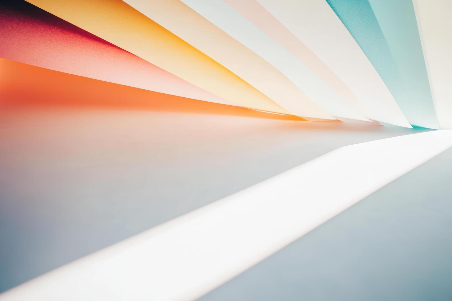 Colorful paper sheets creating a dynamic gradient in soft light photo