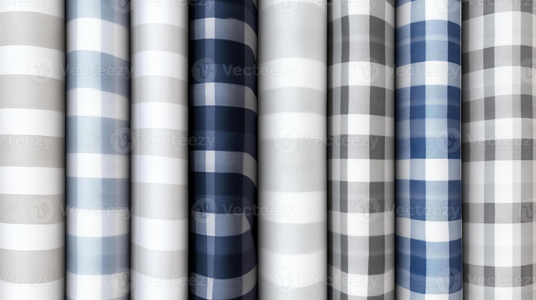 Textiles display an array of checkered designs in blue, gray, and white, suitable for crafting and home decor during daytime or evening events Pro Photo