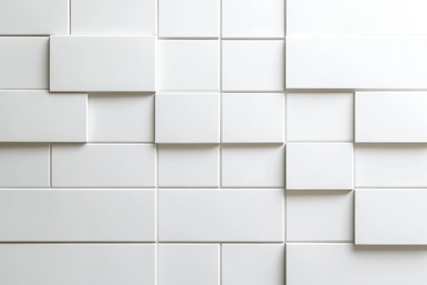 Modern white tile wall with geometric patterns creating subtle depth Free Photo