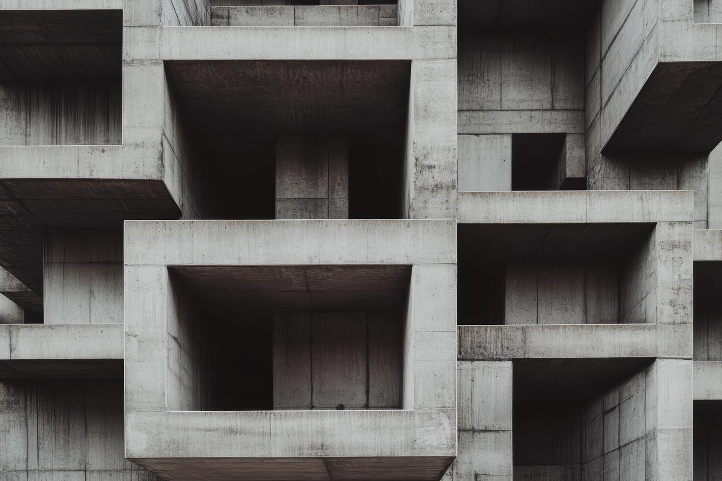Modern concrete architecture with geometric structures in urban setting Free Photo