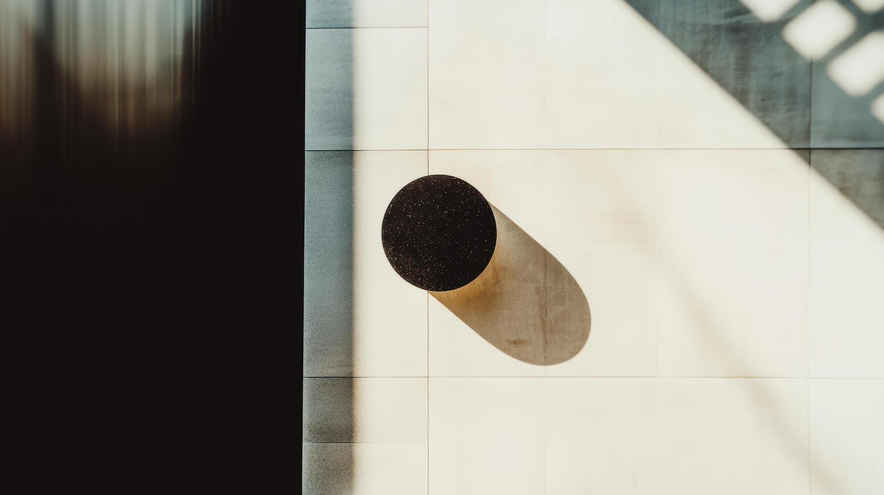 Circular object casting a shadow in a minimalist indoor space Free Photo