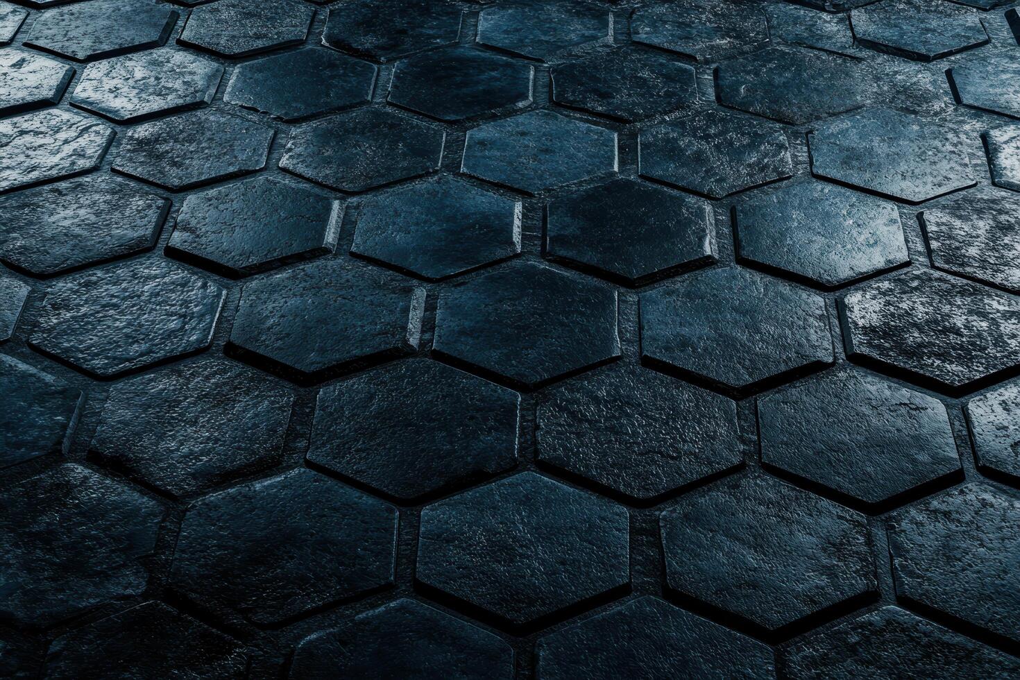 Dark hexagonal tiles create a striking geometric pattern on the floor Free Photo