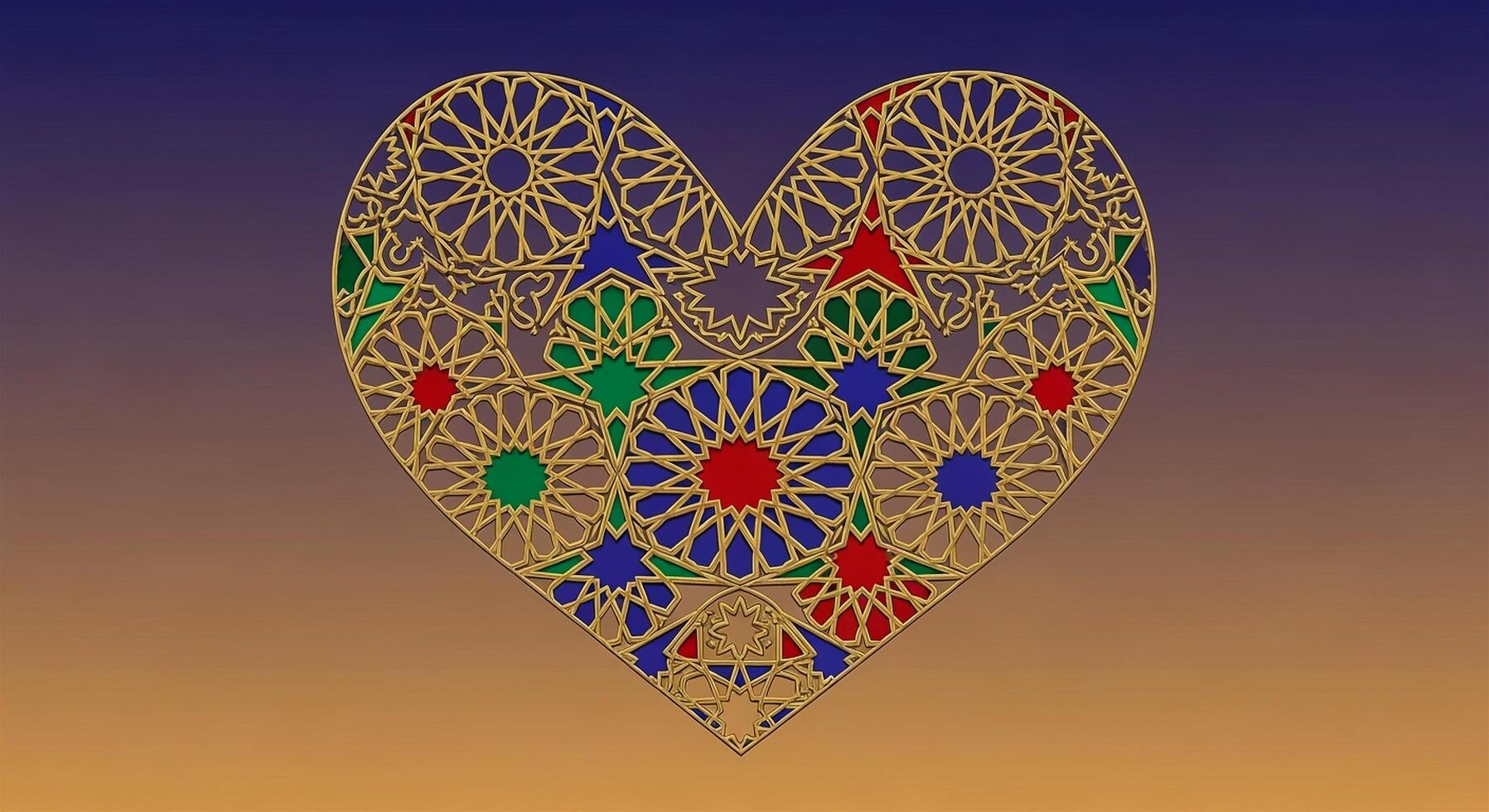Intricate Heart Design with Colorful Geometric Patterns on Gradient Background. Free Photo