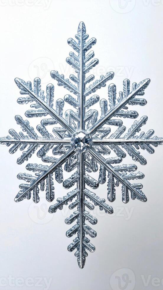 Macro Photograph of Symmetrical Snowflake Structure on White Background in Studio Lighting, Close Pro Photo