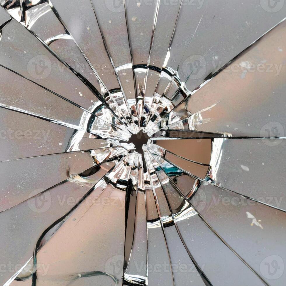 Cracked Glass with Radial Fractures Creating Abstract Patterns on Gray Background Pro Photo