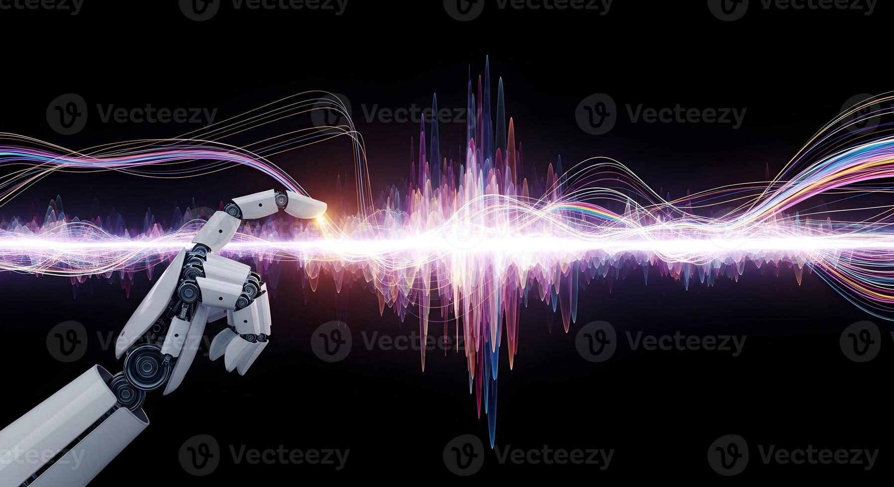 A robotic artist creating a vibrant, abstract digital painting with streams of light, a powerful metaphor for , machine creativity, artificial artistry, and the intersection of technology and art. Pro Photo