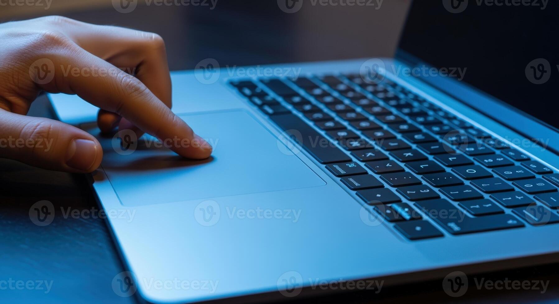 Close-up of a persons hand using a laptop touchpad for navigation and control Pro Photo