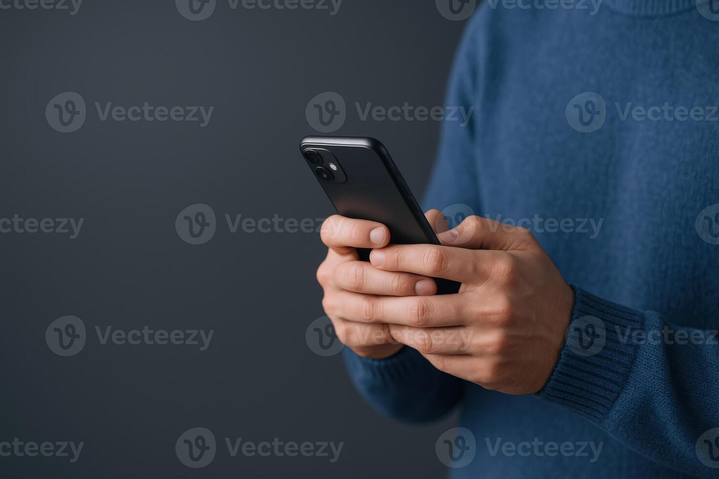 Man using smartphone for communication, browsing, and social media in a modern and minimalist style Pro Photo