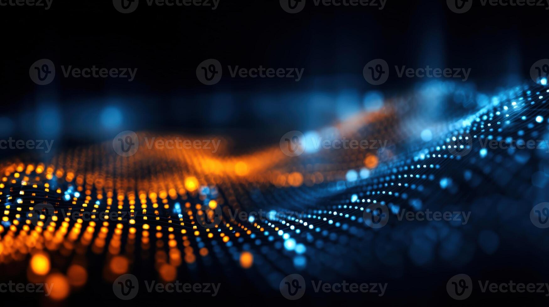Abstract Data Visualization with Blue and Orange Dots on a Dark Background for Technology Concepts Pro Photo