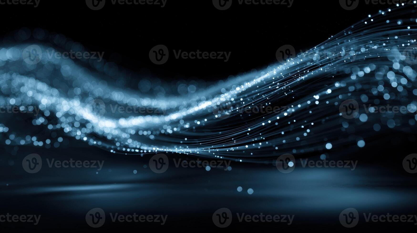 Abstract Dynamic Wave of Light Particles with Depth of Field Effect on Dark Background Pro Photo