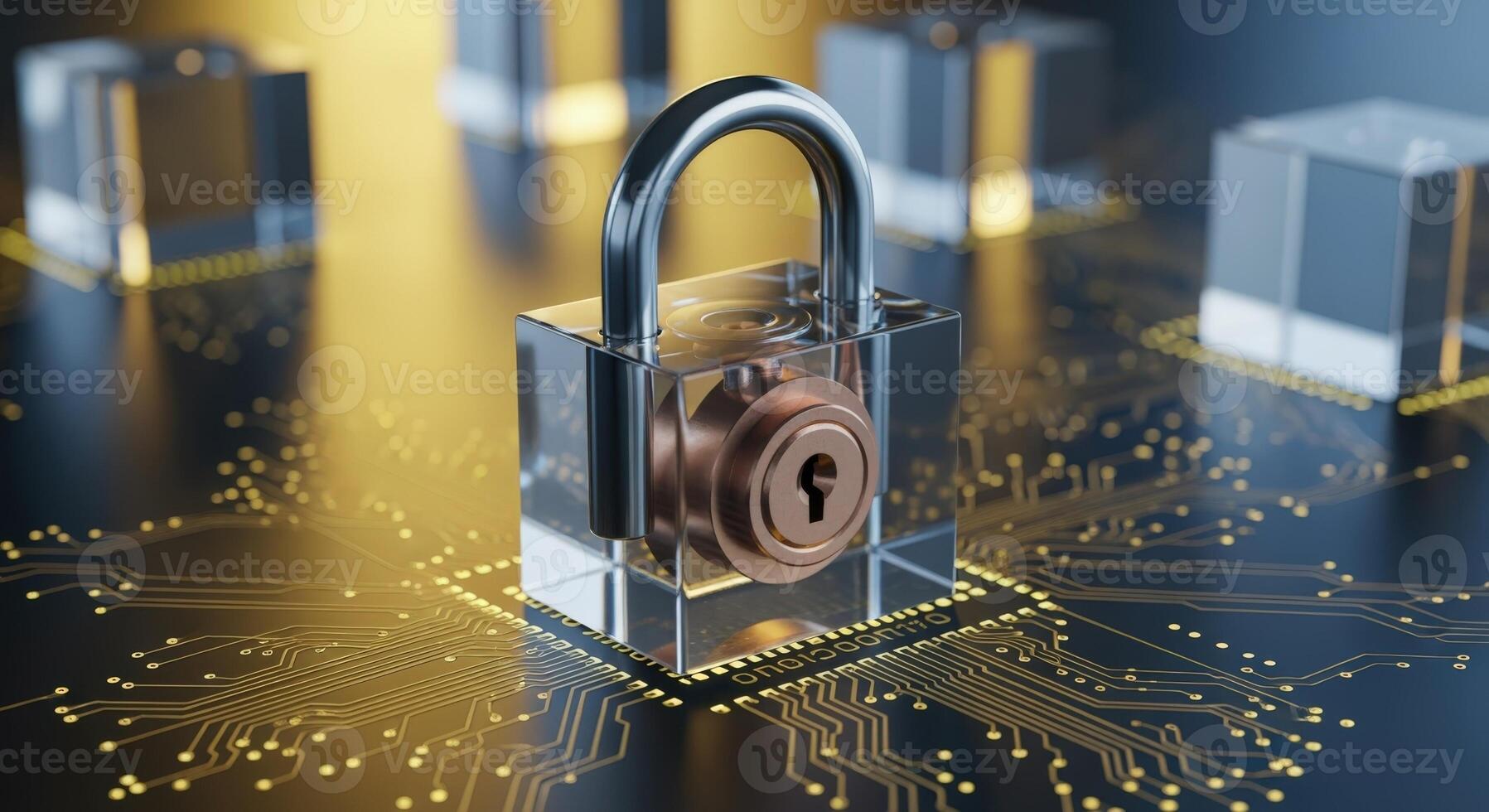 Secure Data Padlock on Circuit Board Illustrating Cybersecurity and Data Protection in a Digital Age Pro Photo