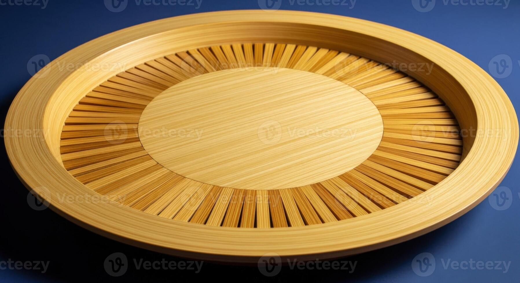 Elegant Round Wooden Tray with Radial Design, Ideal for Serving and Display on Table Pro Photo