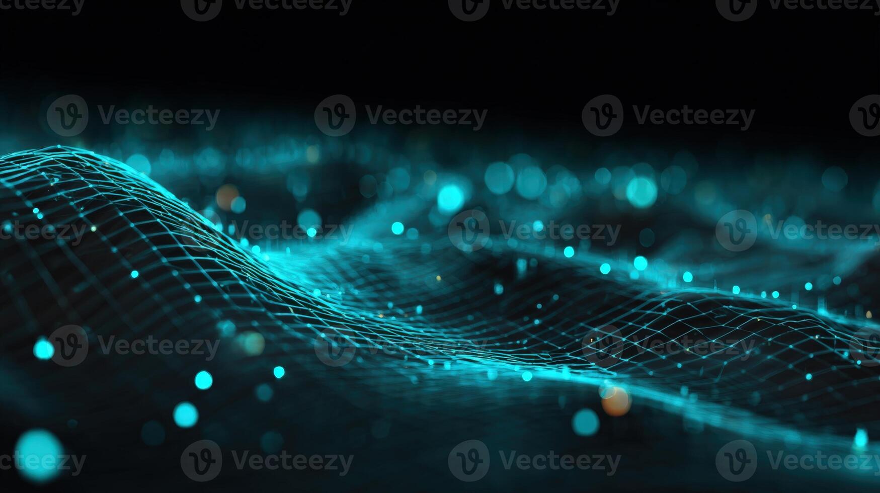 Abstract Cyan Network Background with Particle Effects for Technology, Science, and Communication Concepts Pro Photo