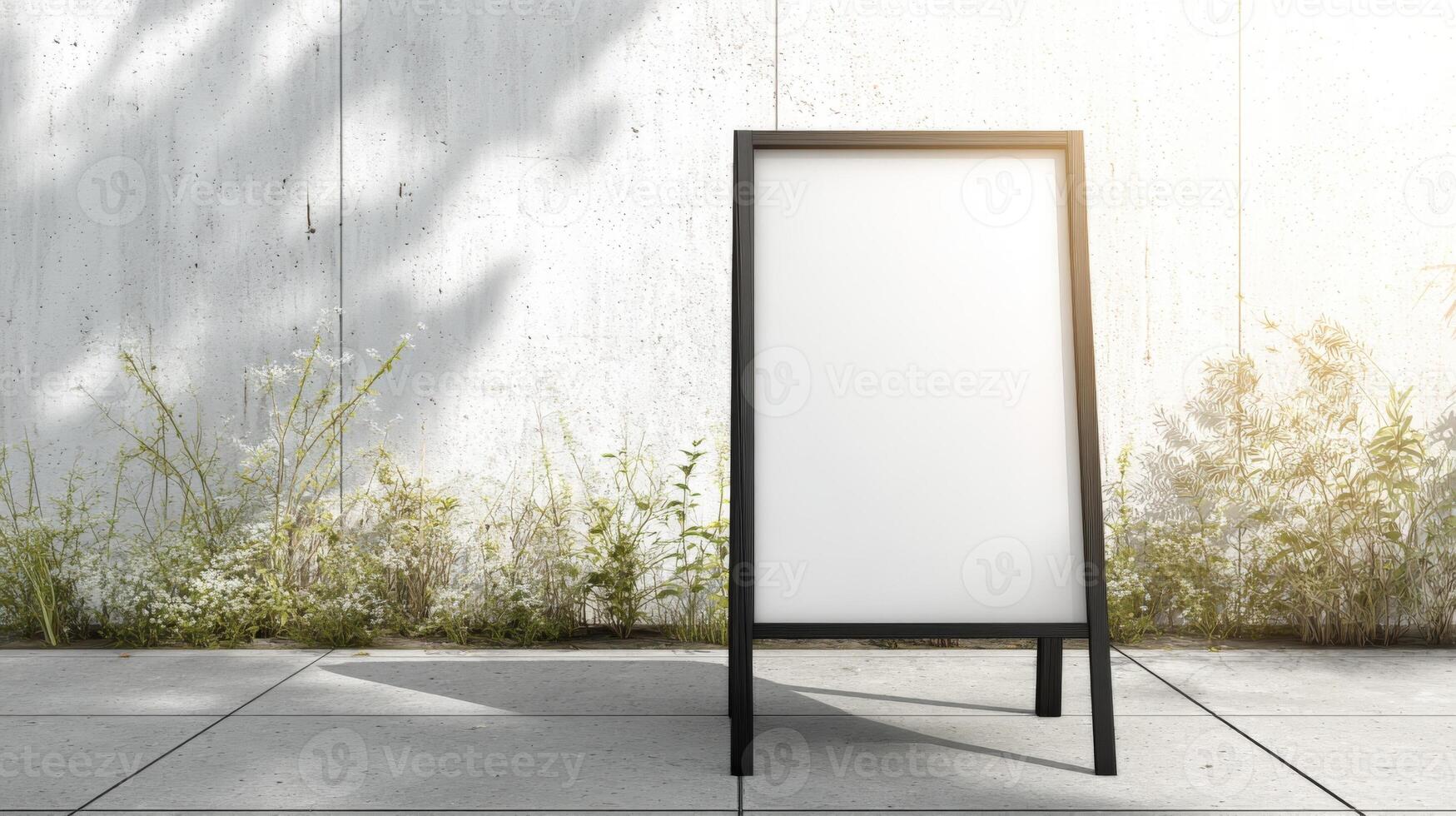 Blank A-Frame Sign Mockup on Sidewalk with Nature Background, Ready for Custom Design or Message Pro Photo